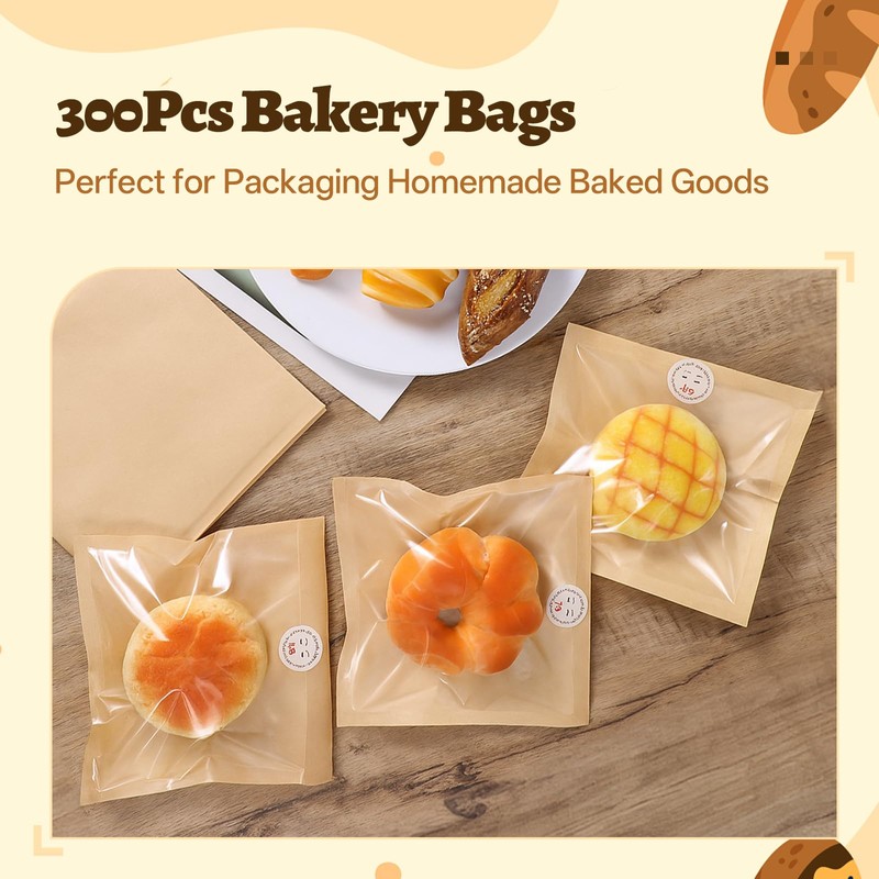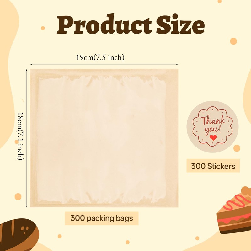 - Package Included300 Paper Baking Bags with Window (7.1 x 7.5 inches) and (300 sheets) Sealing Stickers. These baking bags provide an environmentally friendly solution and add a professional touch to your baked goods presentation.