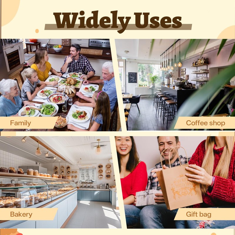 - Heat-SealbleThe paper bags for food are suitable for using stickers to close the packaging, you can also use tape or a self-sealing machine to seal the bakery bag to extend the storage time of the food.