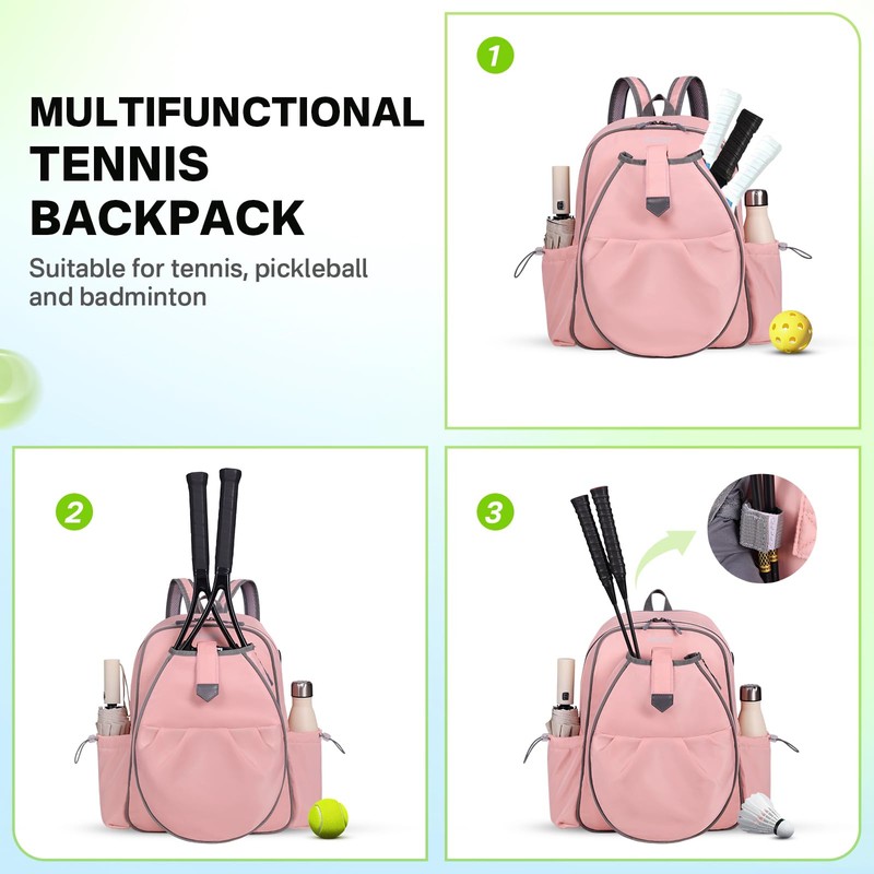 - 【Versatile & Stylish】Our tennis racket backpack features a sleek design that blends style and practicality. Ideal for tennis, pickleball, badminton, and more.Whether you're on the court or out for daily errands, it pairs seamlessly with sportswear or casual outfits. Its versatility suits the gym, sports classes, and travel, making it a thoughtful token for holidays or special occasions