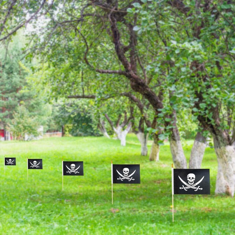 JKAVPPT 12 Pack Pirate Jack Rackham Stick Flag Small Mini Hand Held Flags