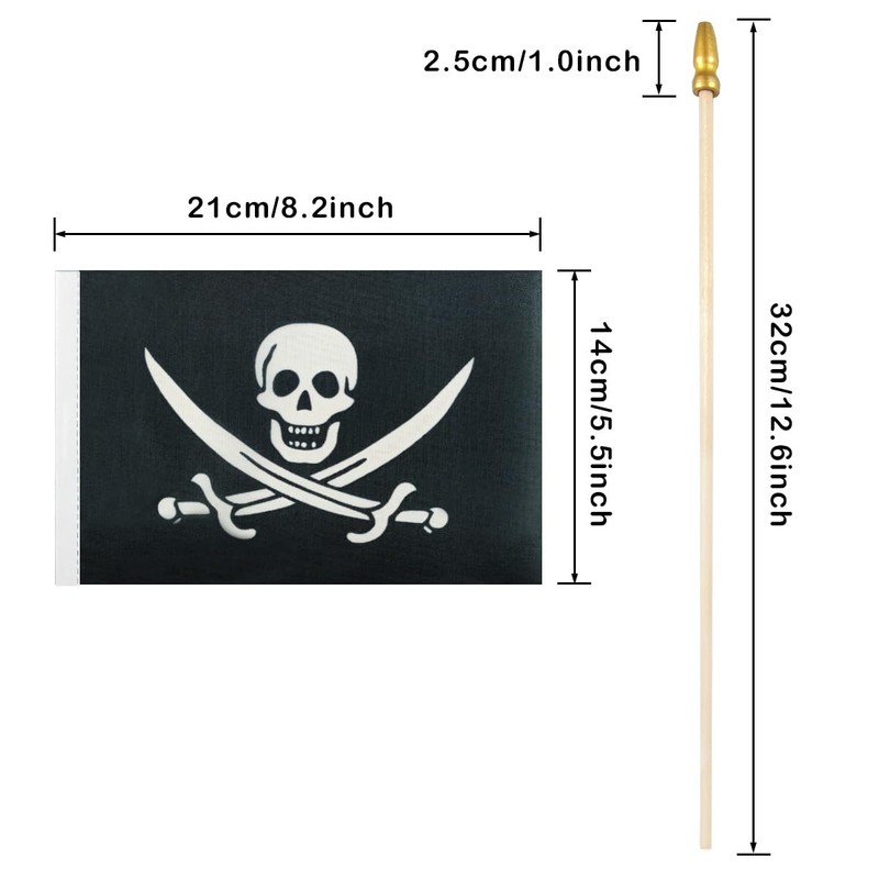 • FEATURES: Set of 12 Jack Rackham flags on stick, 5.5x8.2 Inch flag with 12.6 inch wooden stick