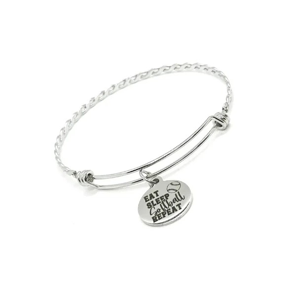 JKCE Designs Eat Sleep Softball Repeat Charm Bracelet, Stacking Bangle, Wife ...
