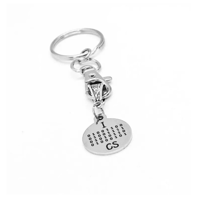 JKCE Designs I Love CS Binary Code Charm Keychain, Computer Science, Computer Programmer