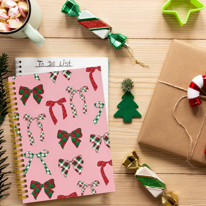 JKMBN Hot Pink Christmas Journaling Notebooks, Coquette Red Green Buffalo Plaid Bows Spiral Notebook, Christmas Office Supplies, Preppy Hardcover Spiral Notebooks College Ruled 5.5 x 8.3