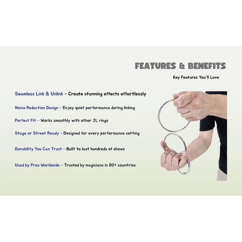 - 🔗 Features: Set includes multiple polished metal rings Seamless appearance – no visible breaks Easy to handle, perfect for beginners and professionals Great for stage, street, or close-up magic