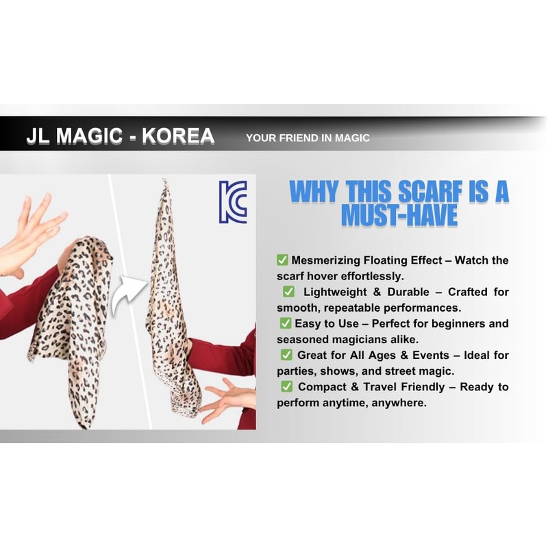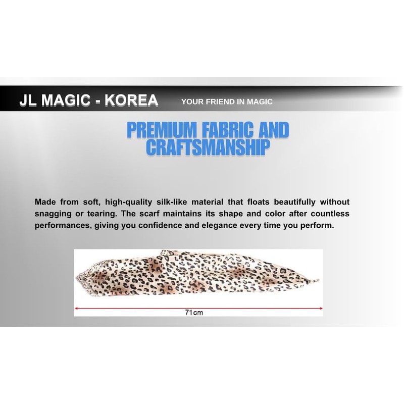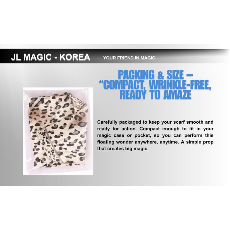 - ✨ Product Features: Surprising Levitation Effect: The scarf appears to lift and float without any visible support. Easy to Perform: Suitable for beginners and professionals alike. No complicated setup or sleight of hand required. Soft Leopard-Print Fabric: Eye-catching and elegant design adds flair to your performance. Compact and Lightweight: Perfect for stage, close-up, or shows — easy to carry and reset.
