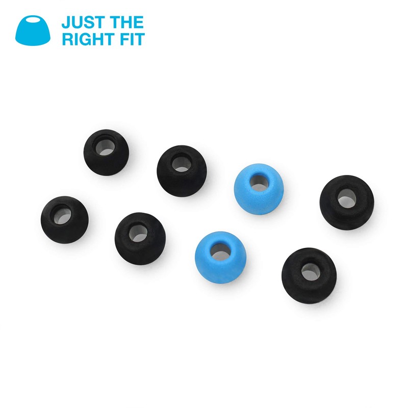 JLab Cloud Foam Mnemonic Earbud Tips, 4 Pairs of Custom Fit Universal Tips, Memory Cloud Foam, Black/Blue