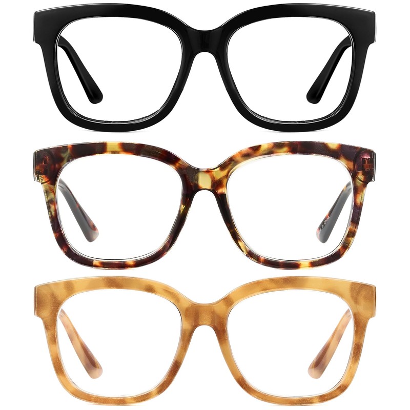 JM 3 Pack Fashion Reading Glasses for Women Blue Light Blocking Oversized Square Readers with Spring Hinge +2.75