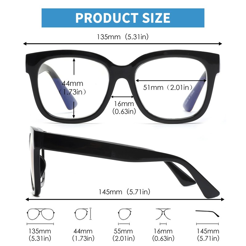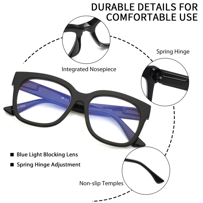 - Women's Reading Glasses - Classic square shape fashion frame reading glasses for women with blue light blocking lens and spring hinge. Universal size fits most face shapes.