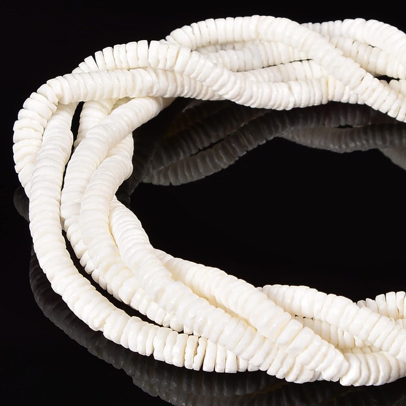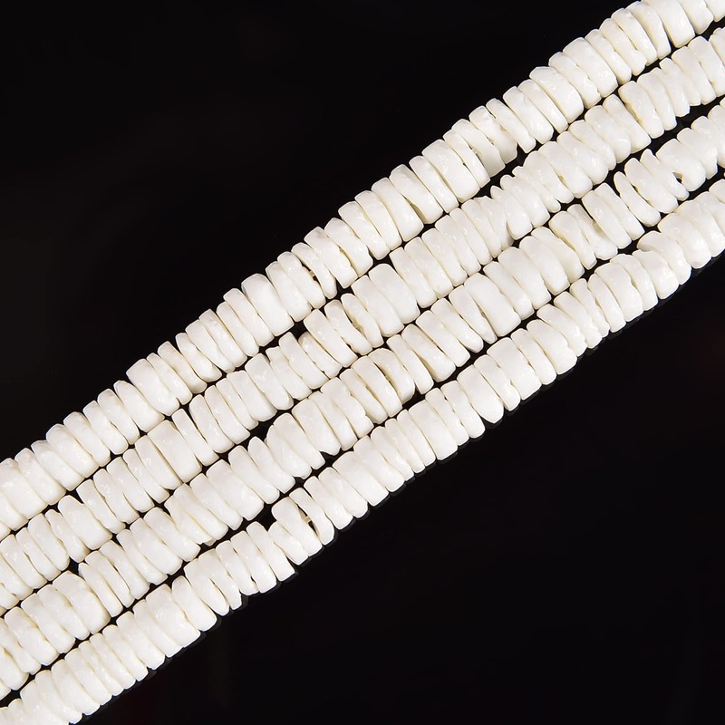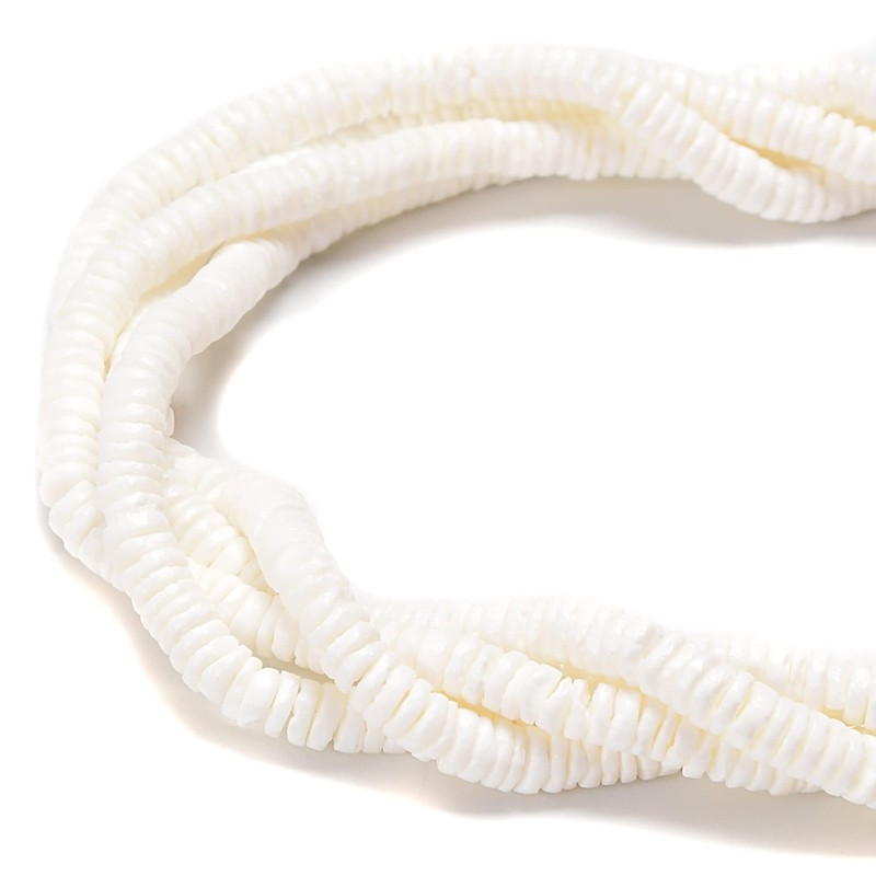- Material: White Shell Shape: Heishi Disc Color: White