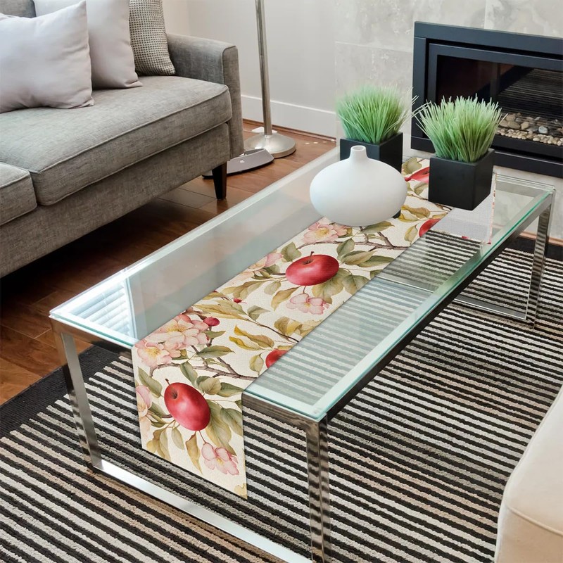 JMAVZWS Fruit Apples Flowers Table Runner 48 Inches Long Decorative Linen Table Runners Rustic Farmhouse Table Runner Seasonal Spring Home Decor 13 x 48 Inches