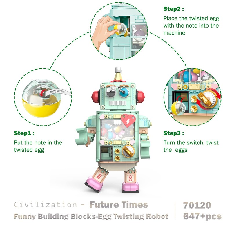 - 【3 in 1 game experience】 Our egg-twisting robot integrates the three elements of building blocks, egg-twisting and games together, with multiple entertainment. Retro color design, unique styling design, and diverse gameplay are enough to make this egg-twisting robot toy the king of the party.