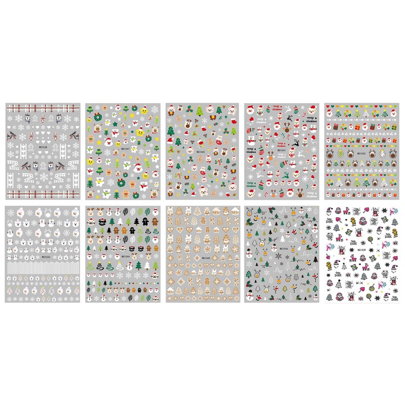 JMEOWIO Nagelsticker Weihnachten 10 Blatt Nail Art Sticker Selbstklebend Nagelaufkleber Schneeflocke Winterurlaub Süß Dekoration Nageldesign Zubehör