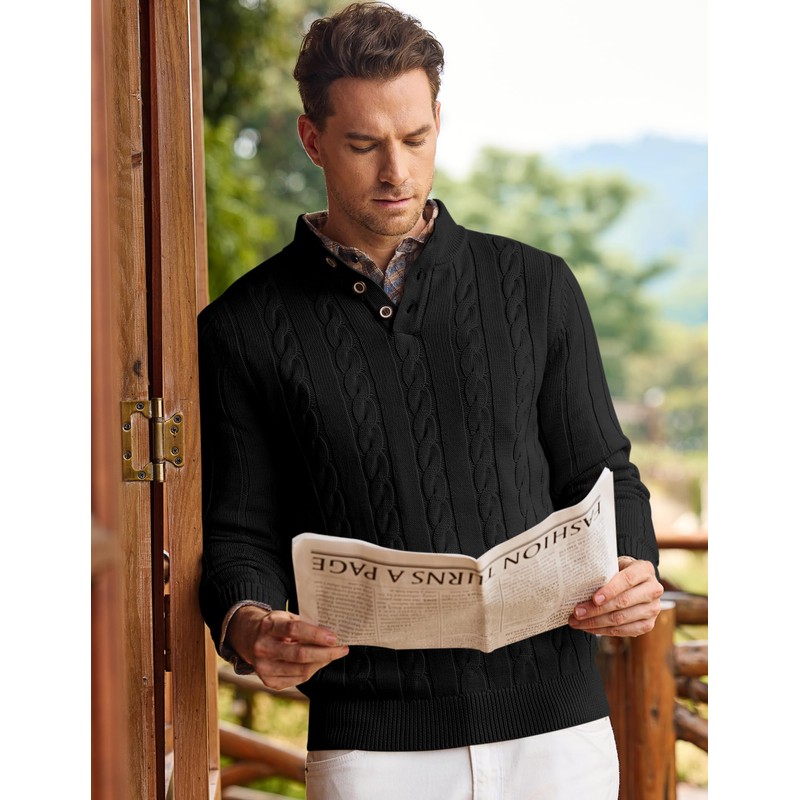 JMIERR Men's 1/4 Button Neck Turtleneck Knitted Jumper Leisure Sweater Winter Jumper Long Sleeve Basic Men's Pullover, black, L