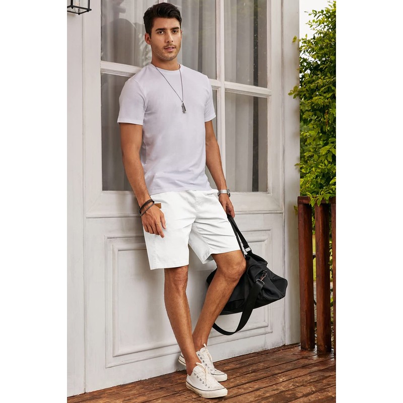 JMIERR Men's Casual Shorts - Cotton Drawstring Summer Beach Stretch Waist Twill Chino Dress Golf Shorts with Pockets for Men 8 Inch Inseam Cruise Attire, US 38(XL), S White