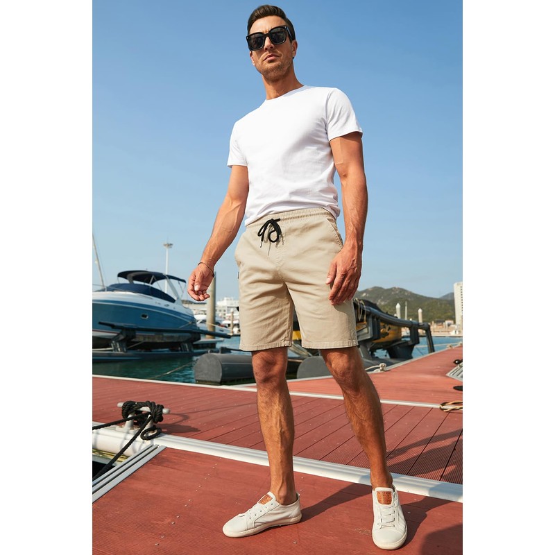 JMIERR Mens Casual Shorts - Cotton Drawstring Summer Hawaiian Beach Stretch Waist Twill Chino Dress Golf Shorts with Pockets for Men 9 Inch Inseam, US 40(2XL), S1 Khaki 2