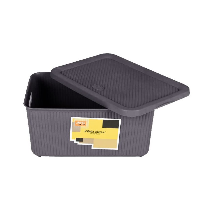JMS we create smile 7L Multipurpose Plastic Storage Box With Lid Storage Basket Storage Container Stackable Bin Box With Handles Makeup Storage (BOTTLE GREY)