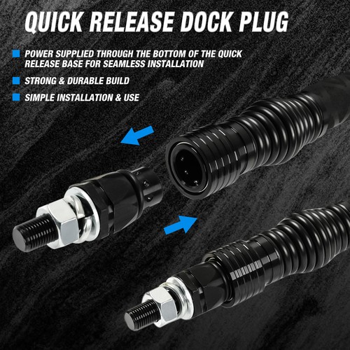 【PLUG AND PLAY】 Using the newest quick-release aluminum base and Plug-and-Play components, you can easily hang the led whip light anywhere. Quickly slide the aluminum base to release it, then drill a hole to place the LED whip, connect the battery cable, and finally use the RF controller for wireless control to switch to different modes and adjust the speed and brightness of the led whip light.