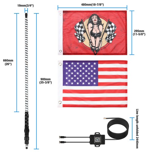 【WIDE APPLICATIONS】 LED Whip Antenna Light can be installed anywhere you want, whether you want to add creative lighting to your vehicle or as warning flags. Fit for all vehicles such as UTV, ATV, motorcycles, dune buggies, sand rails, snowmobiles, trucks, off-road, go-karts, etc.