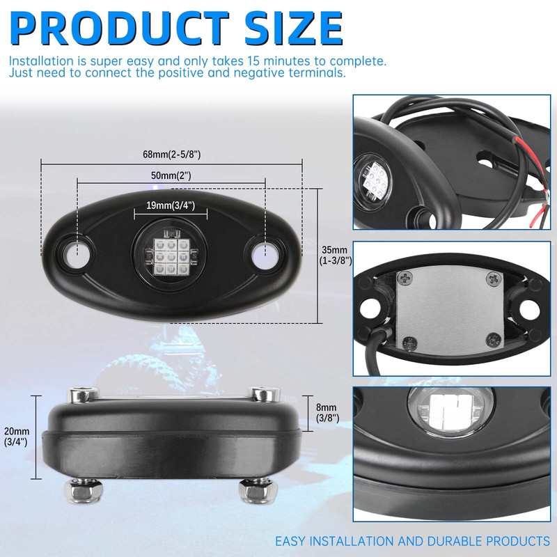 Blue led rock light ,Each lamp adopts 9 high-quality LED chips, which can illuminate your chassis in a wider range and make driving safer.