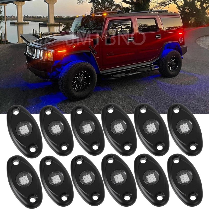 JMTBNO For Hummer H2 H3 Blue 12 Pods LED Rock Lights Underbody Neon Underglow LED Kit