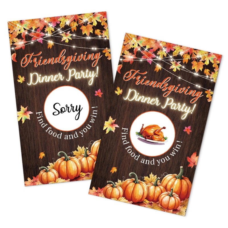 JMYROG 50 Pack Friendsgiving Dinner Party Scratch Off Game, Turkey Scratch Cards for Dinner Game, Thanksgiving Raffle Tickets for Birthday Games, Baby Shower, Fall Thank You Party Games