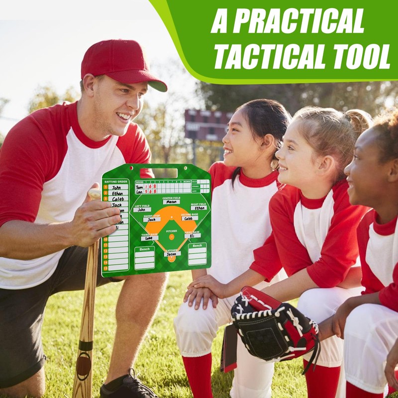 - 【DOUBLE-SIDED BASEBALL LINEUP CARDS】-With double-sided design, our baseball lineup board for dugout helps coaches visually present and adjust game strategies. The front of baseball lineup board is a complete baseball field with clear markings and lines, helps to plan the lineup for each game. The reverse side for recording player scores and formulate effective tactics, training plans.