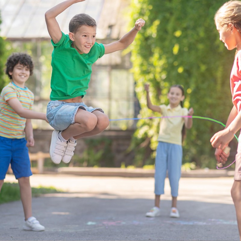 - Uses:Our children's rainbow jump rope is suitable for school games and outdoor activities, company parties, outdoor games, street activities and other activities to help develop physical and mental coordination. It can be used as a perfect gift for children's sports day, birthday, Christmas etc.