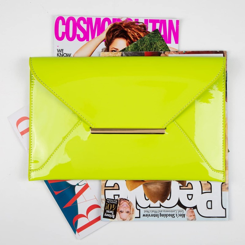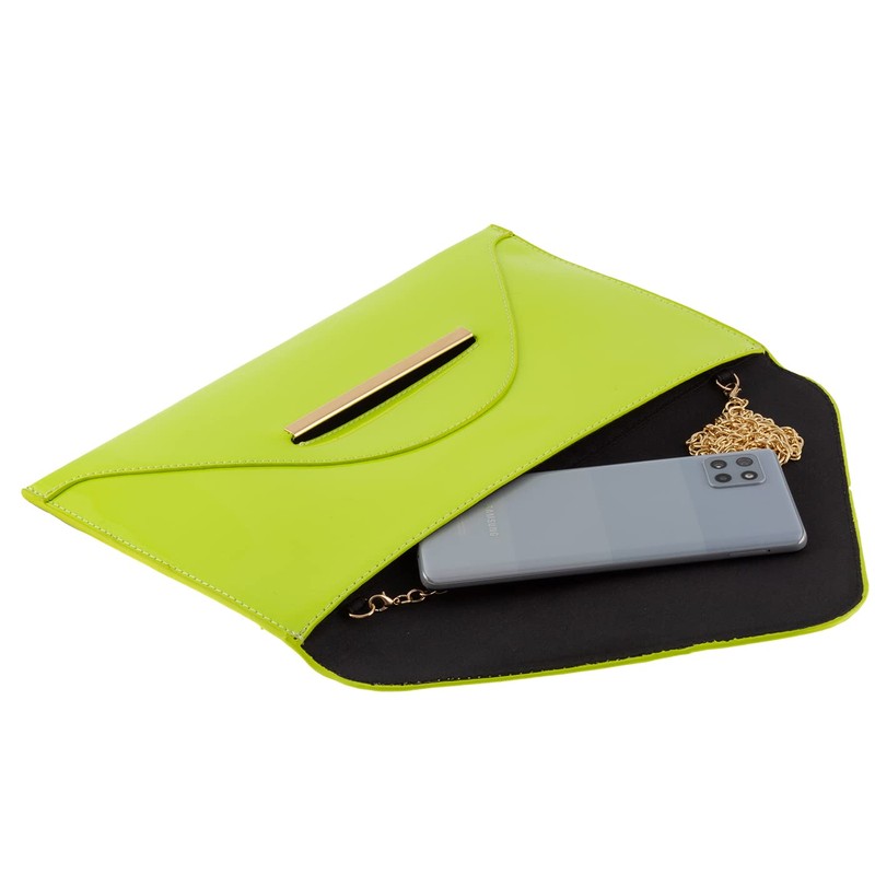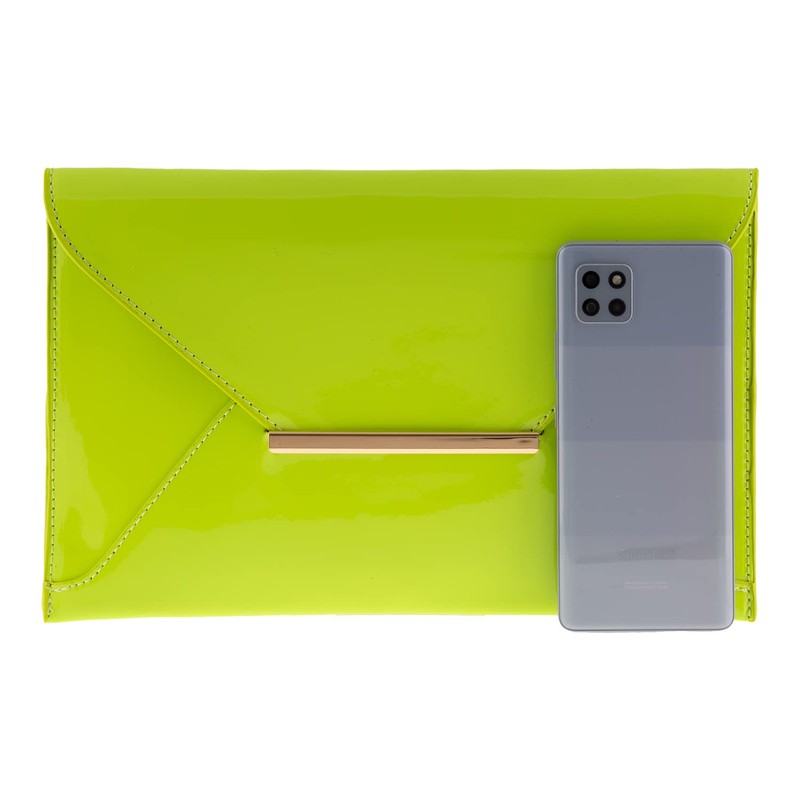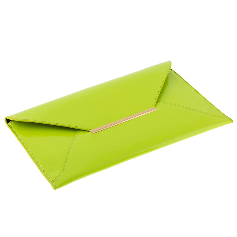 JNB Faux Patent Leather Envelope Candy Clutch Bag, Lime
