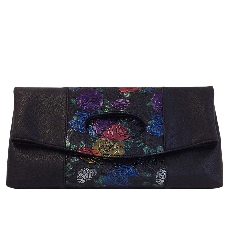 JNB Flower Print Fold Over Clutch, Black, Medium
