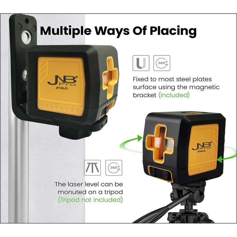 • HIGH-PRECISION GREEN LASER: Achieve straight lines and accurate measurements with the JNB Pro Green Level Laser. Equipped with a Class 2, 1mW green laser, it ensures excellent visibility up to 100ft/30m for indoor and outdoor tasks.