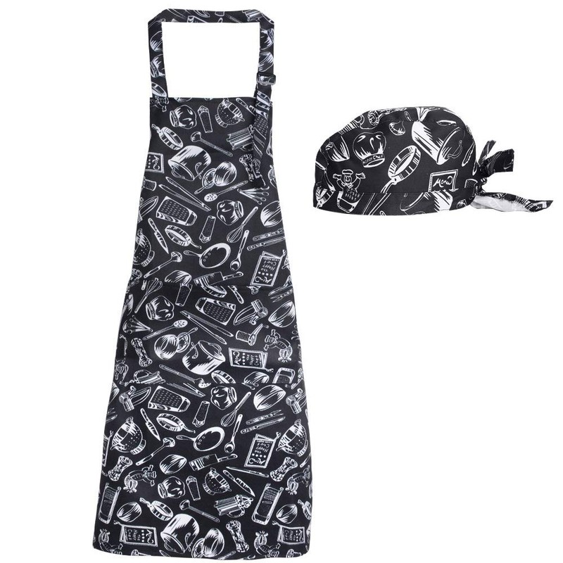 JNCH Adjustable Apron Cooking Apron with 2 Pockets Kitchen Apron BBQ Apron Bib Apron Barbecue Apron with Hat for Men Women Chef (3 Styles)