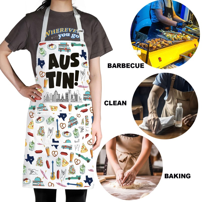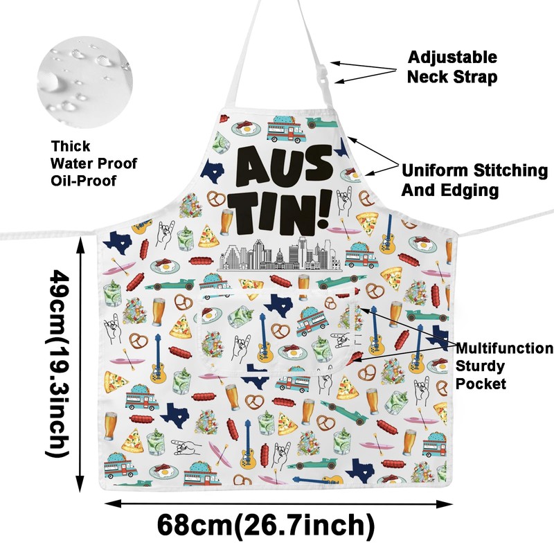 JNIAP Austin Texas Apron Austin Kitchen Apron Austin Texas Souvenirs Gifts Austin Texas Cooking Apron (Austin apron)