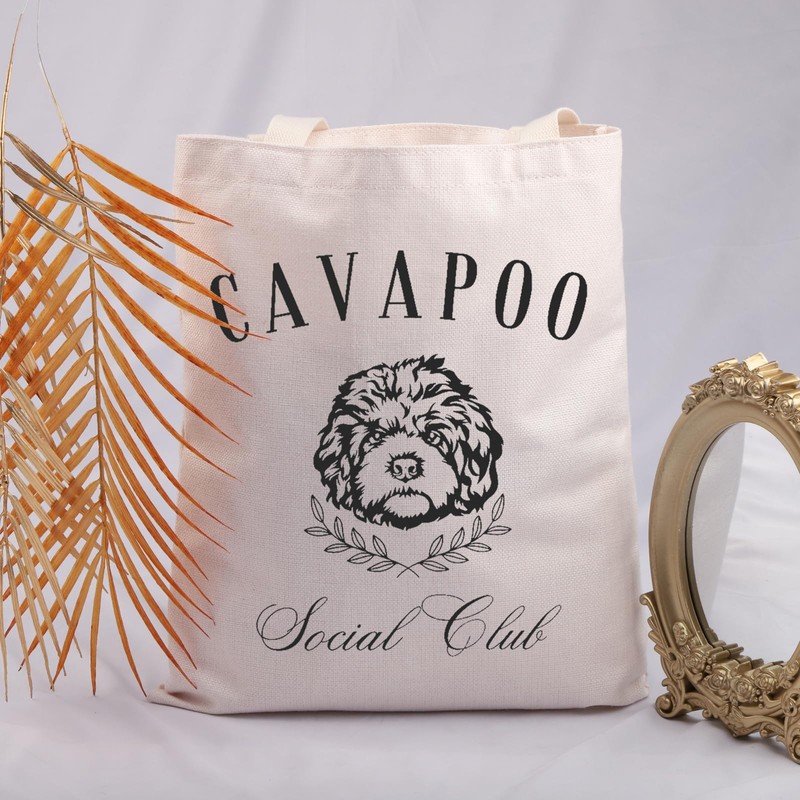 JNIAP Cavapoo Gift Cavapoo Social Club Tote Bag Dog mom Gift For Cavapoo lover (Cavapoo Social Tote Bag)