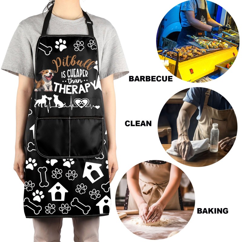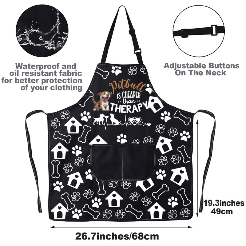 JNIAP Pitbull Kitchen Apron Pitbull Cooking Apron Pitbull Mom Gift Pitbull Is Cheaper Than Therapy Pitbull Lover Gift (Pitbull apron)