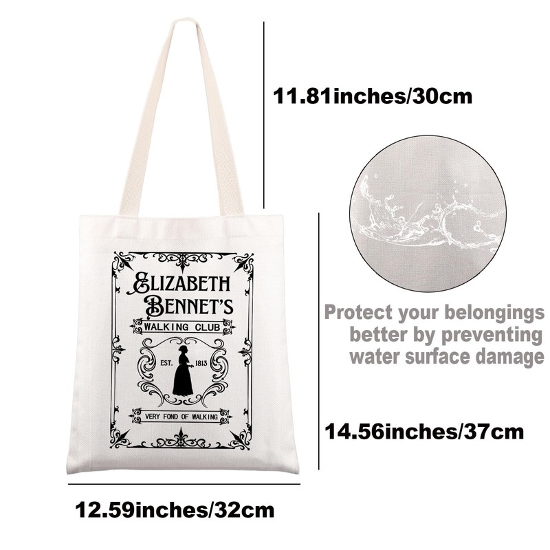 JNIAP Pride Prejudice Tote Bag Elizabeth Bennet Gifts Pemberley Tote Bag Elizabeth Bennet Walking Club Gifts, Elizabeth Tb, Large