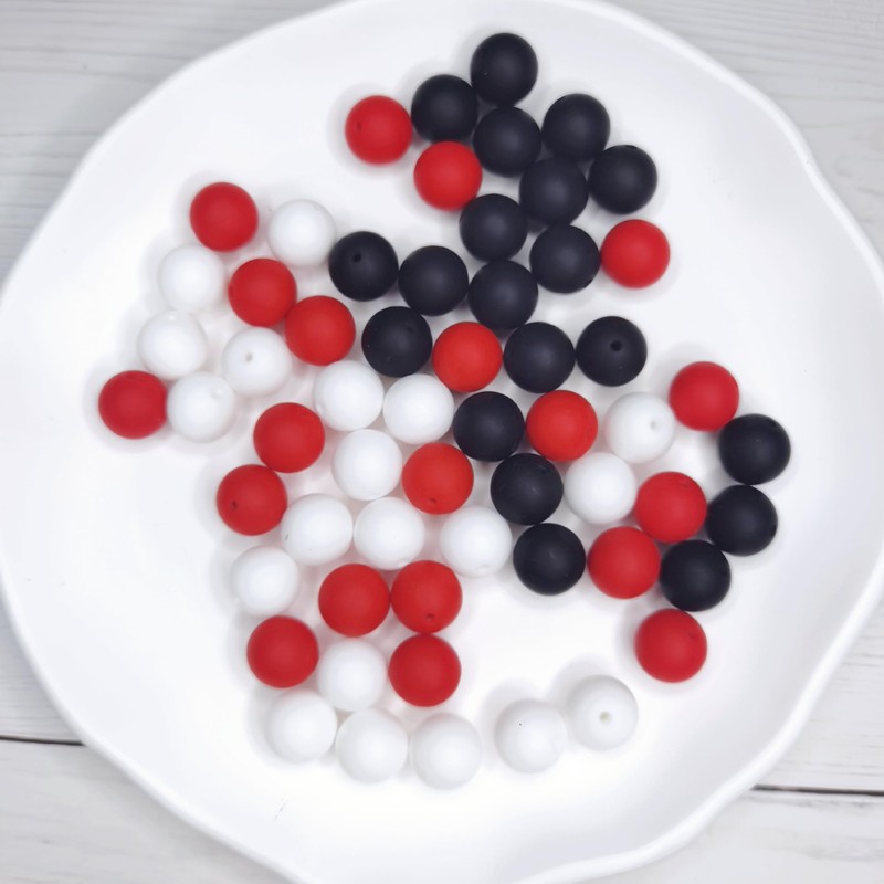 - Package Includes — Totally 60pcs round silicone beads 15mm in diameter, 3 kinds of color including Black, Red, White, and there are 20pcs of each color. The diverse colors can meet most of your decor, enough for you to make some lovely necklaces or bracelets for your mate.