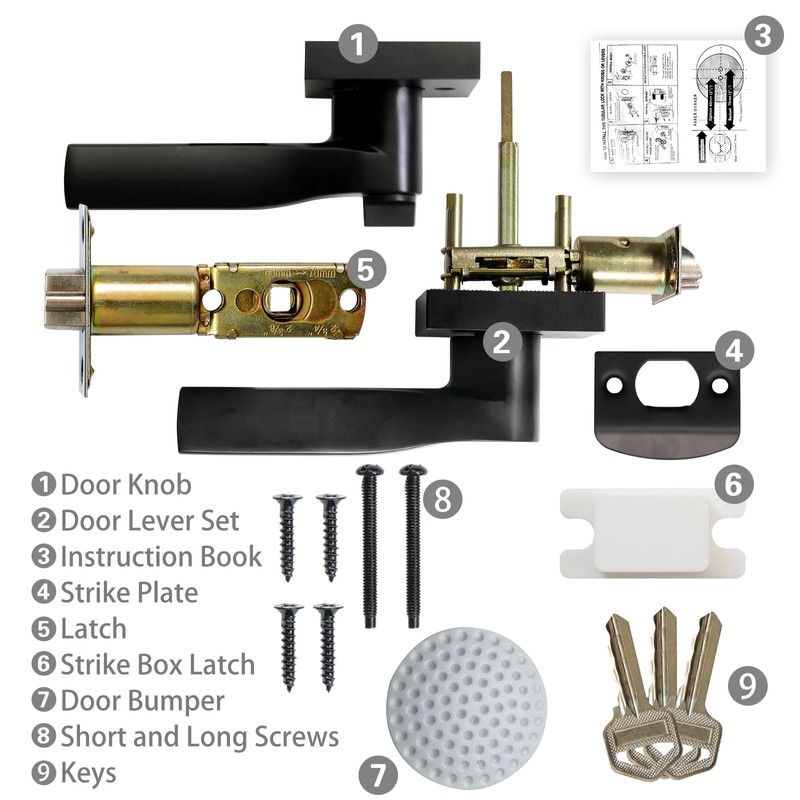 • 【Premium Quality Hardware】Heavy-duty door handle is made of premium quality zinc alloy and brass parts to guarantee rust-free in a high humidity environment. The door lever has a thick and smooth black color powder coating for long-lasting product life.