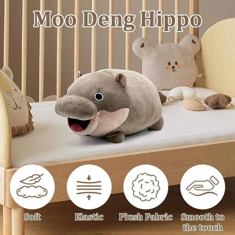- 【Skin Friendly Material】Moo deng hippo plush made from high-quality short plush and PP cotton, which is elastic and irresistibly soft, making people want to hug, comfortable touch that is gentle on the skin, and can withstand any pressure, kneading and squeezing without deformation, can accompany you for a long time.