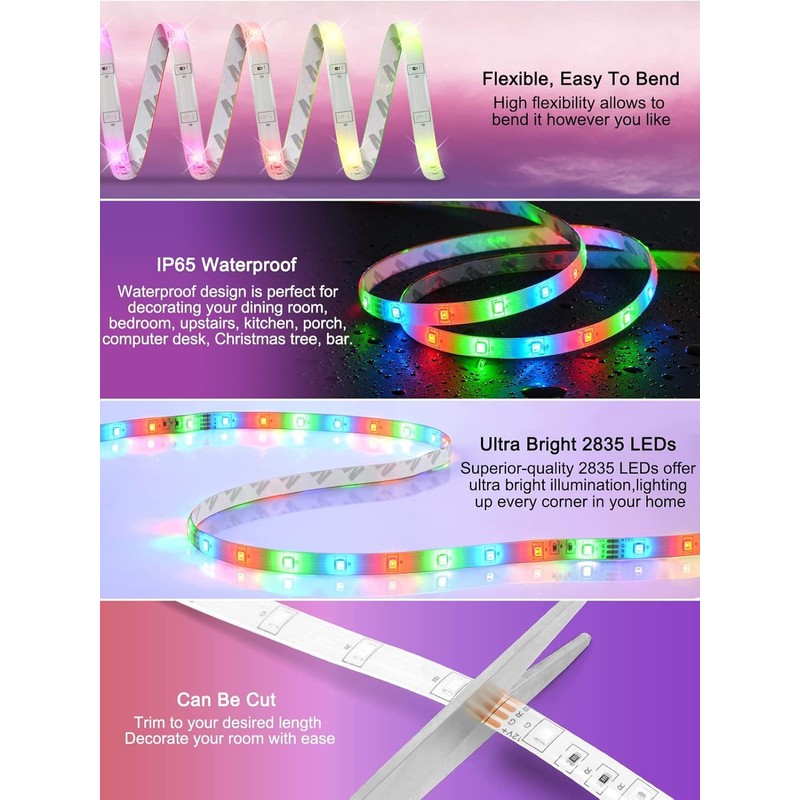 • Wide application: the LED strip lights are ideal for decorating bedrooms, living rooms, hallways, under the ceiling, wardrobes, beds, bookshelves, desks and many more areas