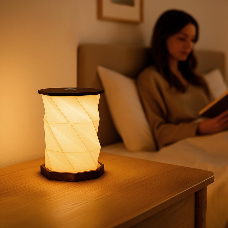 Jocca Rechargeable LED Table Lamp, Warm Night Light, Foldable Origami Design, Wireless, USB-C, Portable Bedside Lamp, Waterproof Paper and Walnut Wood, Decorative for Sleep