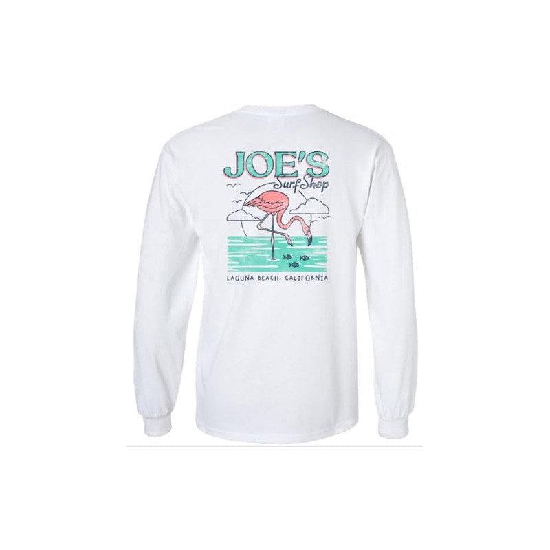 Joe's Surf Shop Men's Flamingo Logo Long Sleeve Tee-L-White/c