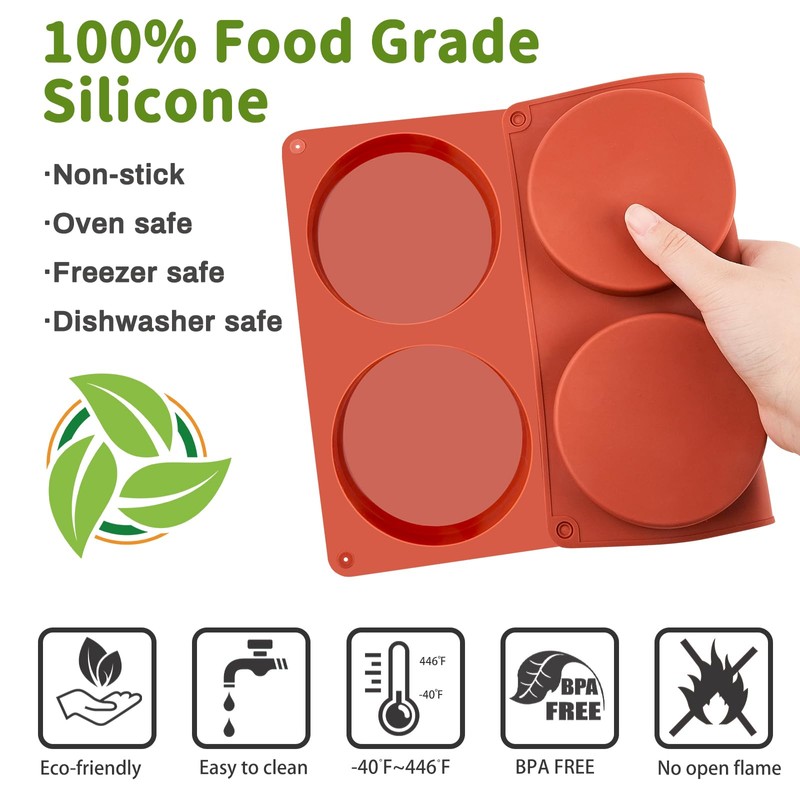 - Versatile: Our food-grade round silicone baking pans are perfect for prepared breakfast eggs, egg sandwiches, jumbo muffin tops, whoopie pies, multilayered shortcakes, also can used for resin coaster casting fondant, soap, candle and so on