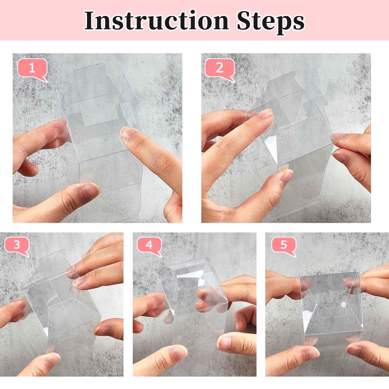 With our clear PET boxes,you can create unique party favors, put some confetti in boxes,decorate with ribbons silk flowers personalized labels stickers or cards,your guests will always remember. ❤Warm Tip: The clear PET boxes come flat and need easy assemble. There's a layer of protect coat attached on the box, please peel off it before use, you will get a super clear box!