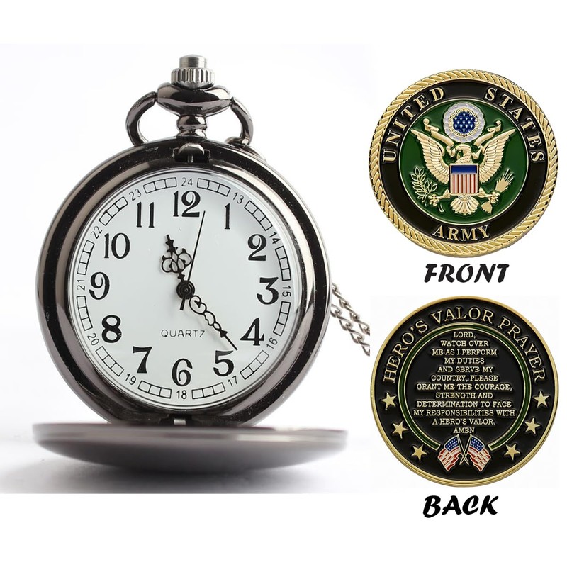 Jofanvin Gifts for Army,Pocket Watch for Army with Military ChanllengCoin,Best Veterans Day Gifts