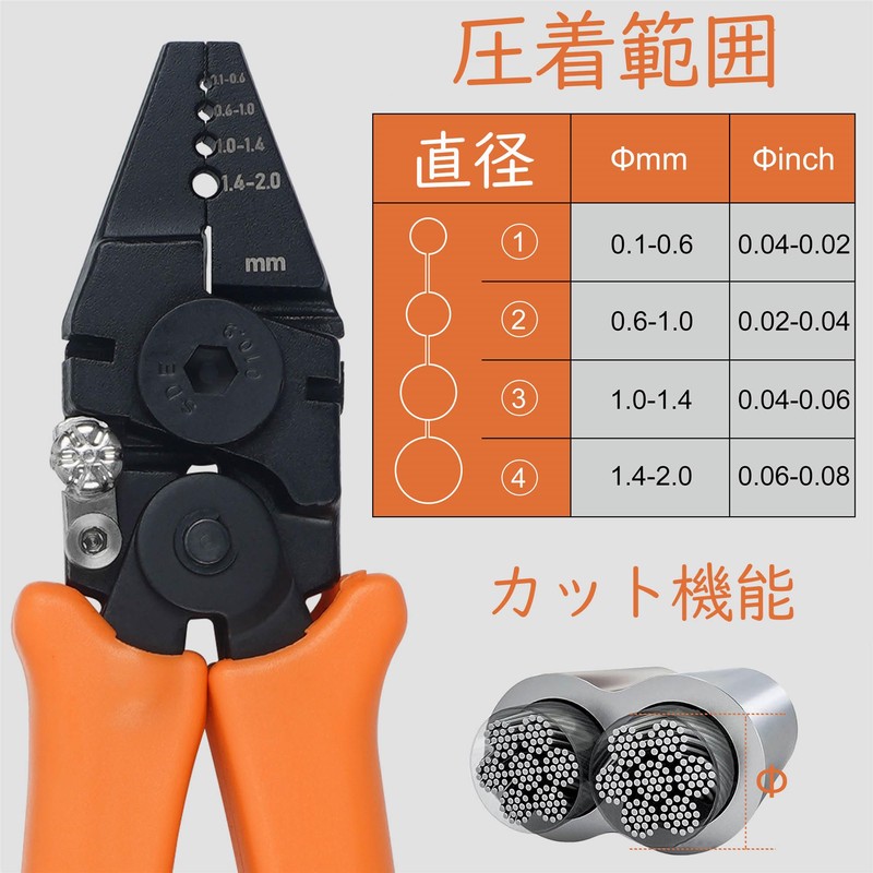 - Compression Sleeve Capacity: Range 0.1~0.6mm, 0.6~1.0mm, 1.0~1.4mm, 1.4~2mm Oval Aluminum Sleeve (or Copper Sleeve)