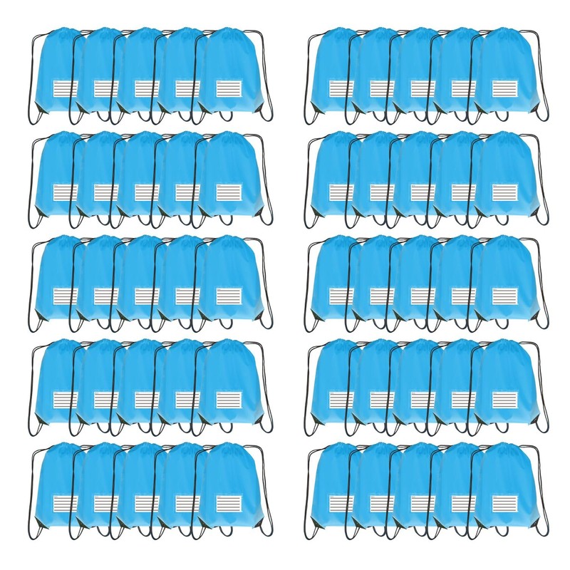 Drawstring Bags,BUlk Drawstring Backpack. Gym Sports Trip Travelling Pedestrianism Cinch Sack DIY for Women Men with Memo Card sky blue light blue label name tag name pocket