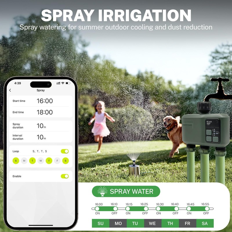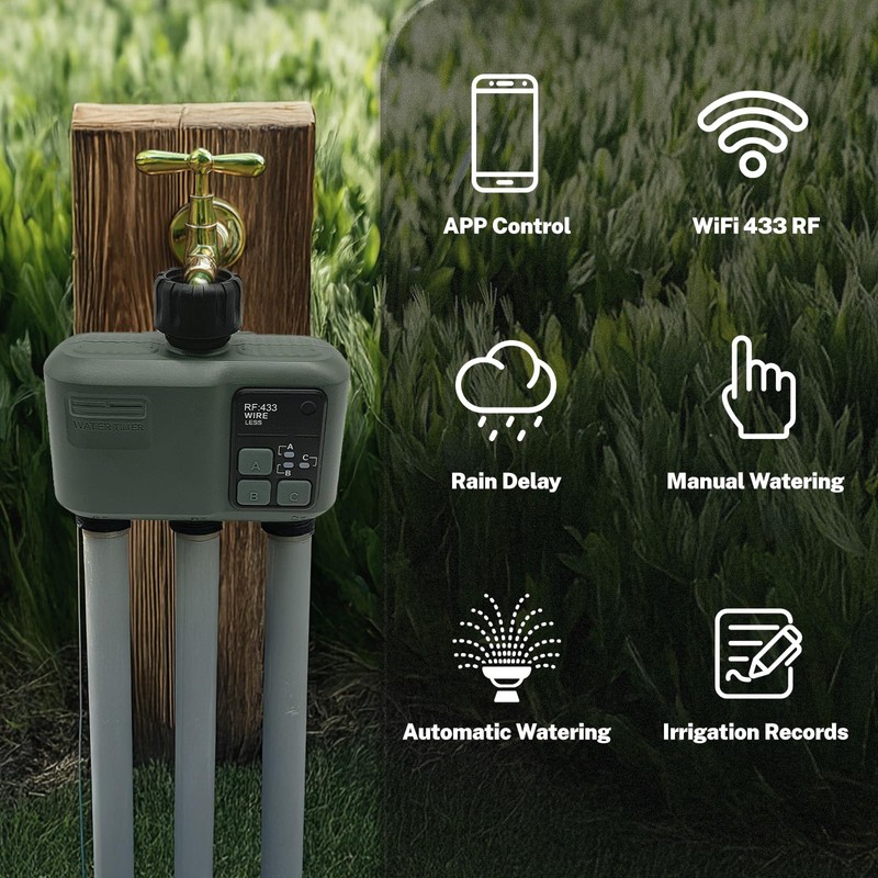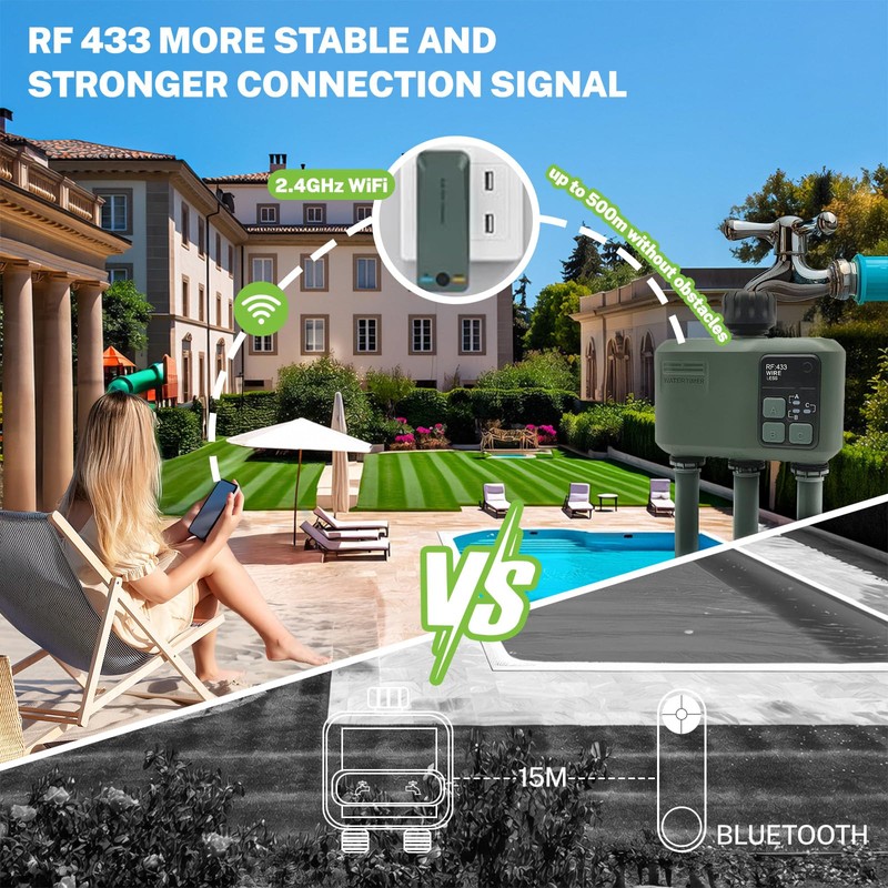 • 500 m remote control technology: intelligent WiFi watering timer equipped with advanced wireless RF 433 technology, the WiFi irrigation timer supports an impressive range of up to 500 metres (without obstacles), so you can control your irrigation system from anywhere on your small farm or estate. Whether you are at one end or the other of the property, you can easily manage your watering needs.
