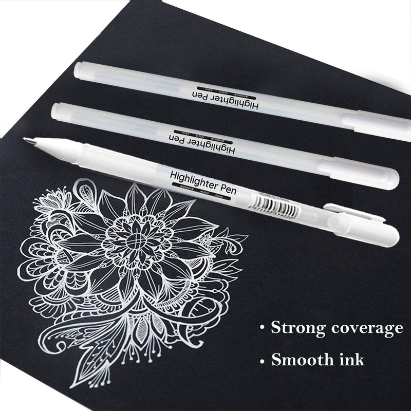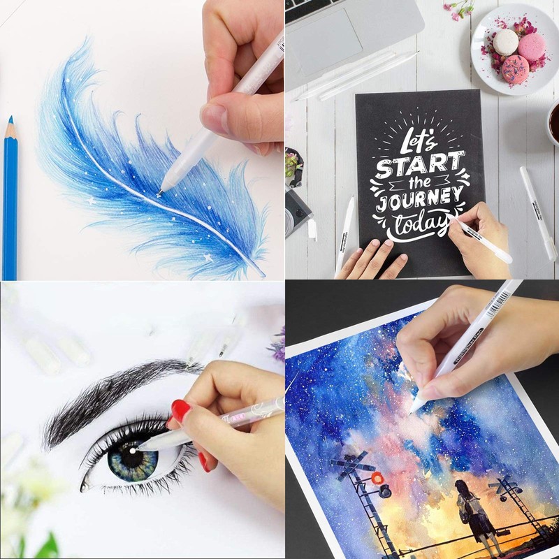 - 🌀【Highlight Pen】: Fine Point Gel Pen used in conjunction with watercolor pens, colored pencils, markers, and paints. It is used in the highlight areas of detailed works. It is also suitable for creating on dark drawings. Suitable for most people.
