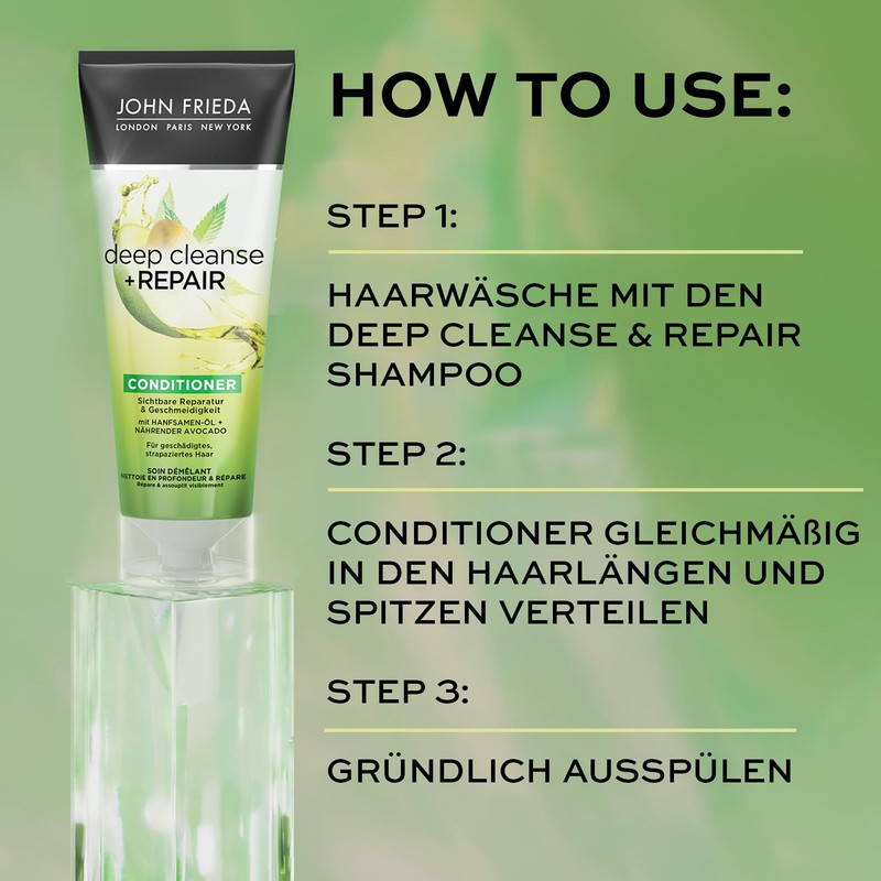 John Frieda Deep Cleanse & Repair Conditioner - Contents: 250 ml - Visible Repair and Smoothness - For Damaged, Damaged Hair